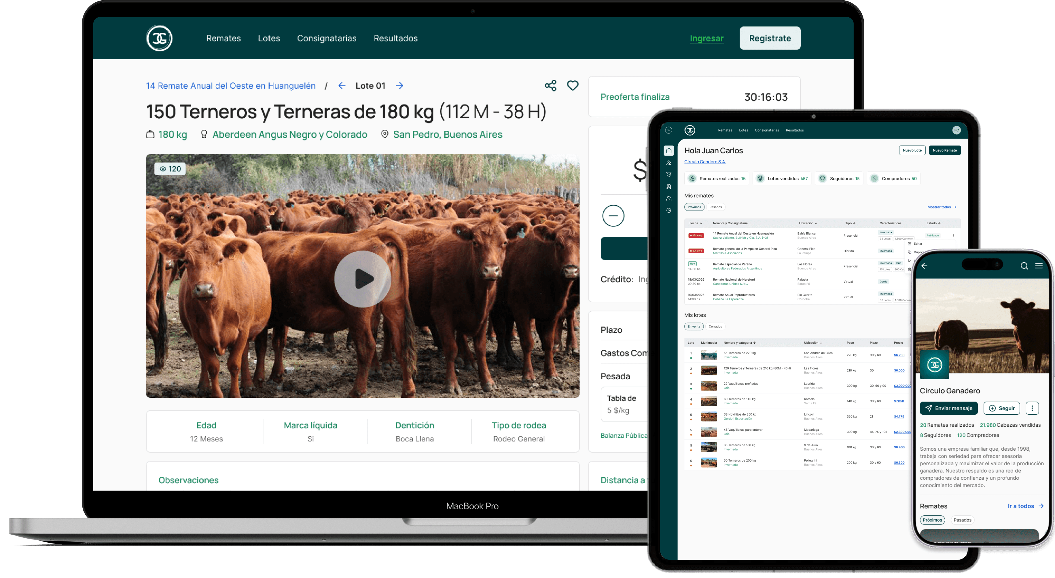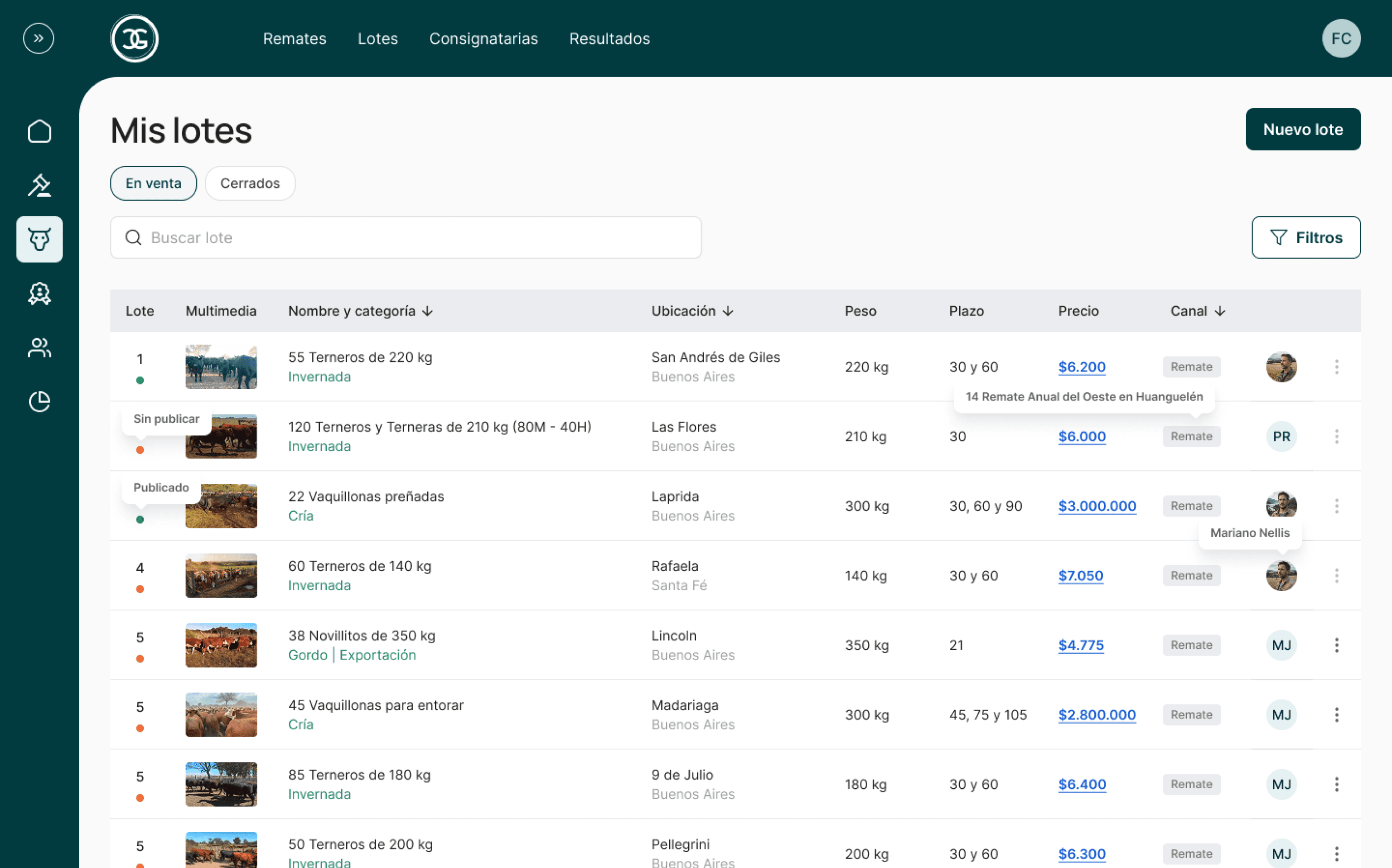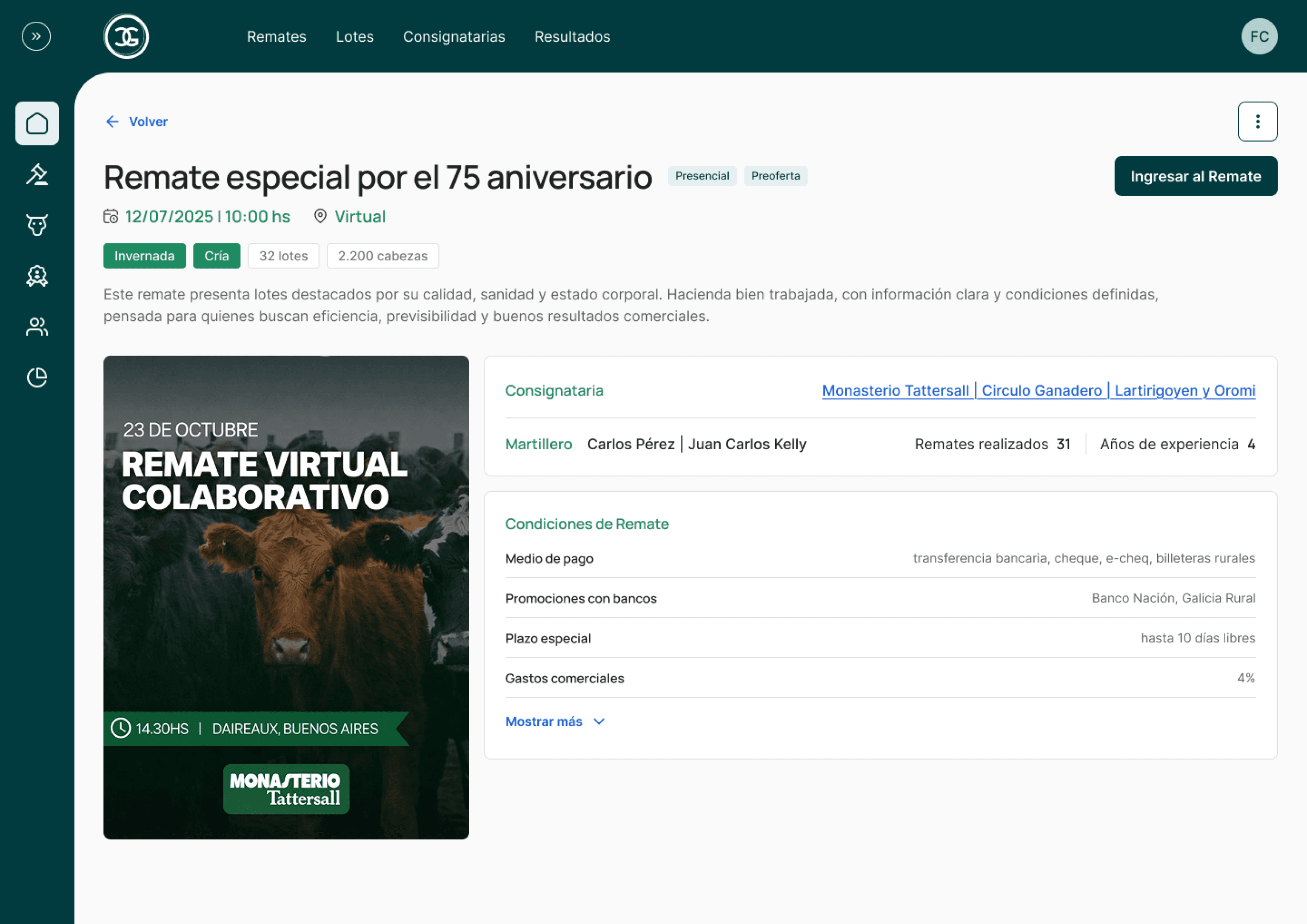 Creamos la página web institucional de tu consignataria, totalmente integrada con la plataforma. Cada lote y cada remate que cargás se publica automáticamente en tu sitio web